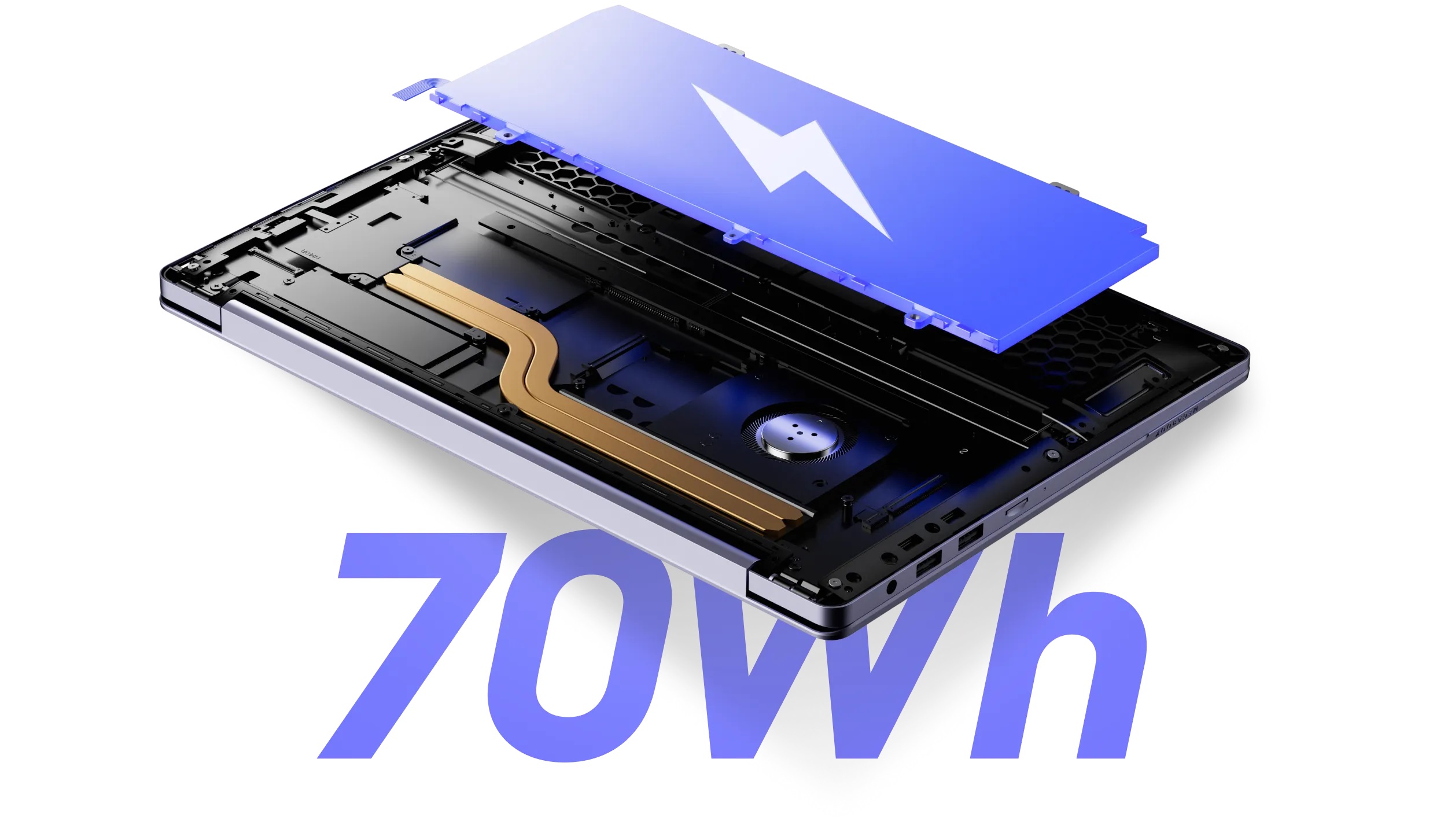 Благодаря аккумулятору 6060 мАч ноутбук способен работать до 17.5 часов на одном заряде.