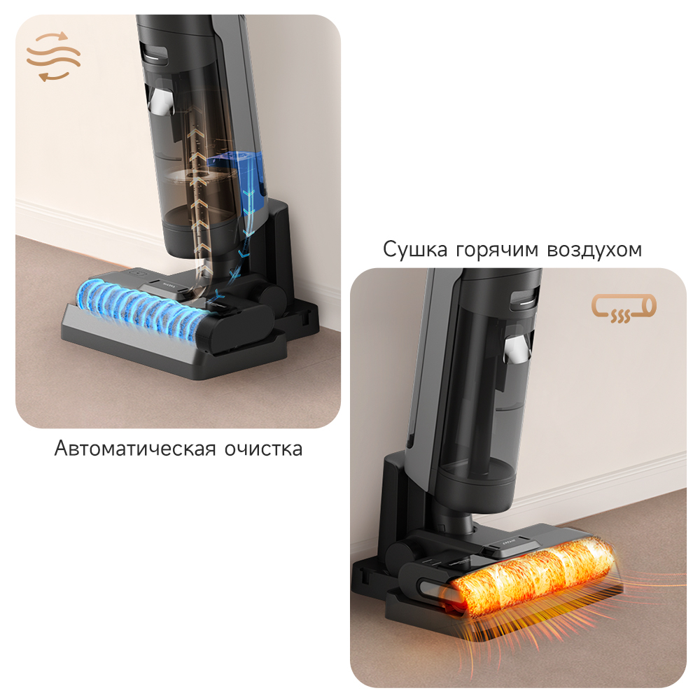 Запускайте автоматическую очистку одним нажатием кнопки. Она обеспечивает тщательную очистку роликовой щетки, благодаря чему вам больше не придется прикасаться к неприятным вещам. После завершения автоматической очистки выполняется сушка щетки горячим воздухом для предотвращения появления плесени, грибка и неприятного запаха. Наслаждайтесь свободным временем, доверив утомительную домашнюю рутину пылесосу Н12Ѕ.