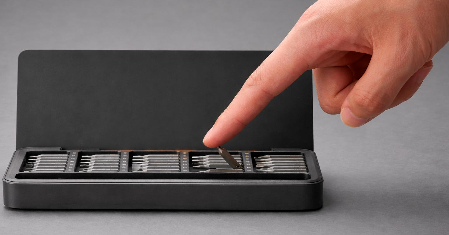 HOTO 28-in-1 Precision Screwdriver Set выполнен в лаконичном сером цвете и ориентирован на аккуратную работу с мелкими крепежными элементами. Набор выглядит современно и минималистично, а компактный формат делает его удобным для хранения дома, в мастерской или на рабочем столе. Такой инструмент хорошо подходит для тех, кто часто имеет дело с электроникой, аксессуарами и другой точной техникой.