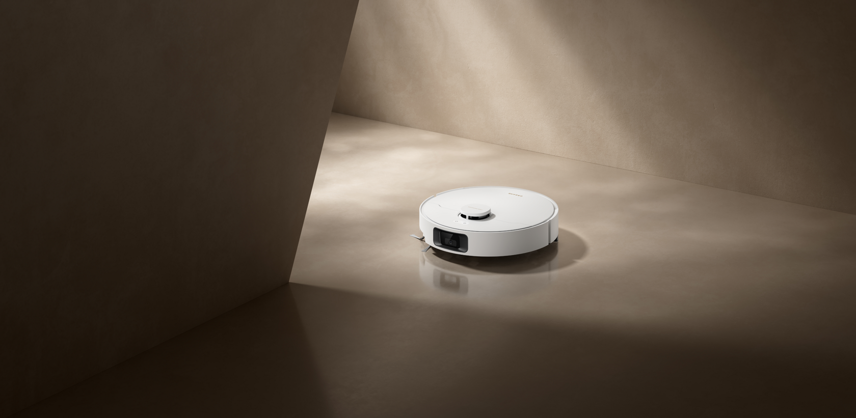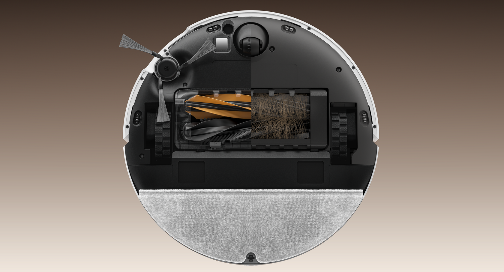 Элегантный белый корпус с сдержанными серыми элементами отлично впишется в любой интерьер. Компактные размеры и небольшой вес позволяют легко перемещать устройство и ставить его на зарядную базу. Всё продумано до мелочей: робот уверенно проходит под мебелью и маневрирует в самых труднодоступных местах.